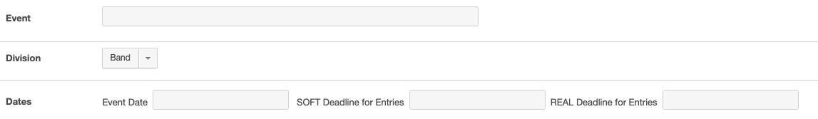 - Entry Deadline - the date by which all entries must be submitted to avoid late fees. For example, if the entry deadline is 9/23/2023 and a director enters students on 9/24/2023, a late fee will be applied to that entry.