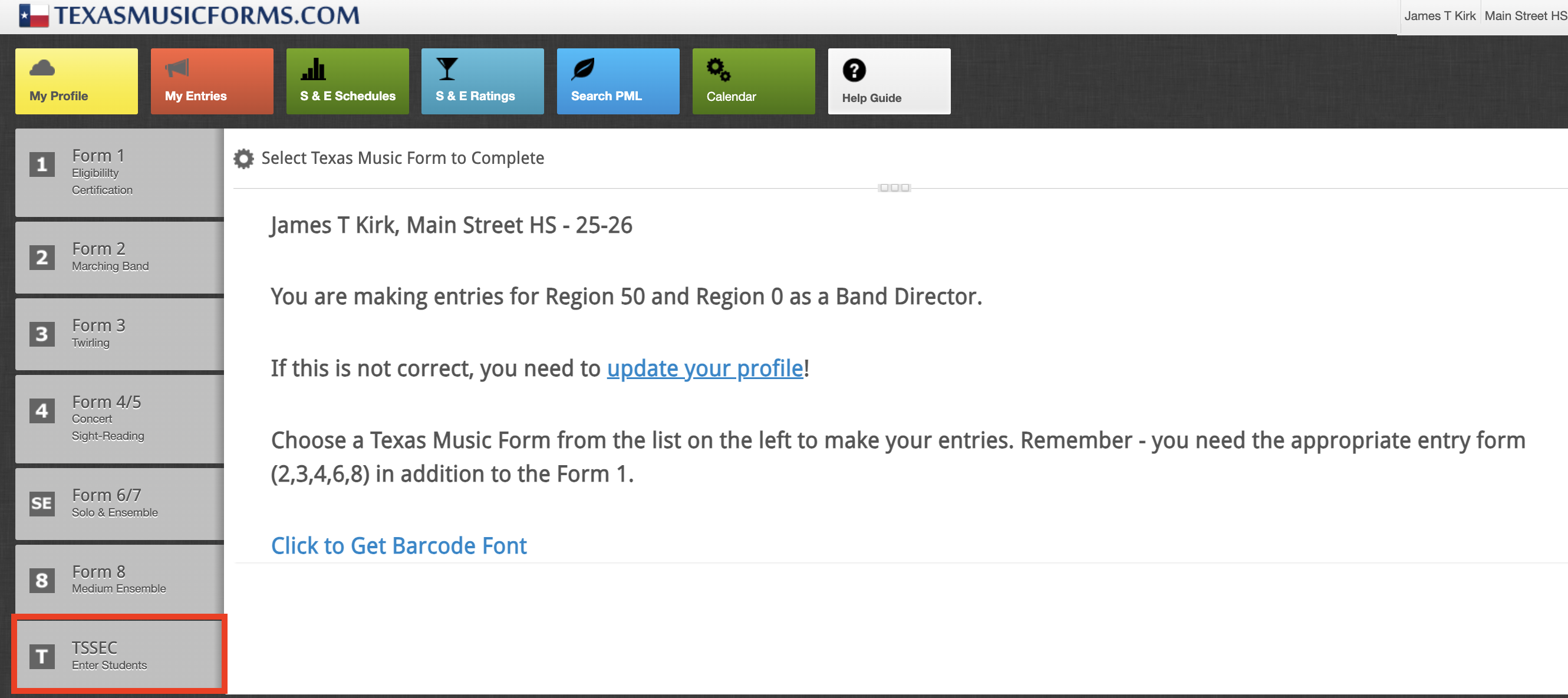 If you have students who qualified to participate in state solo and ensemble contests, you will make entries in texasmusicforms.com under the TSSEC tab.
