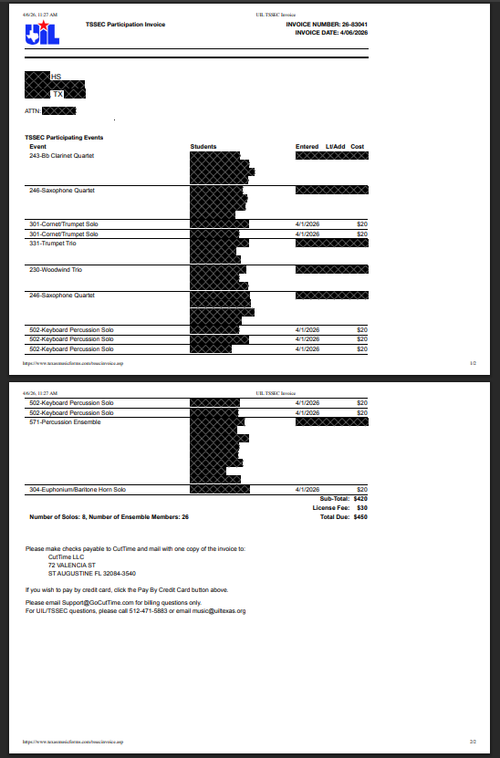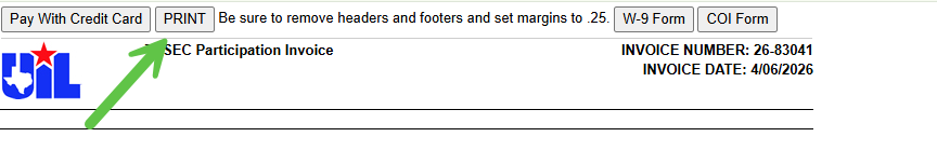 Hit the PRINT button: Maybe you were in a hurry when entering your students for TSSEC and didn’t print your invoice right away, but now you need to send it to your front office for payment before the event. No worries! Here’s how to access and print it: